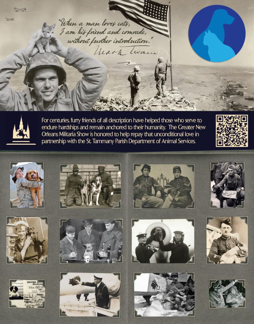 *Help us help them! The Greater New Orleans Militaria Show is a proud partner of the Saint Tammany Parish Department of Animal Services! A portion of our show is a benefit and fundraiser for this exceptional “no kill” animal shelter that maintains a 98% adoption rate. If you bring in any pet related items such as dog/cat food, treats, toys, beds, towels, “pottie pads,” leashes, collars, etc, you will receive $2 off the cost of admission to the show!